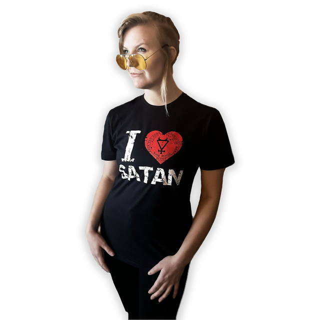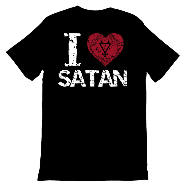 "I Love Satan" t-shirt. Unisex. Gildan soft style.